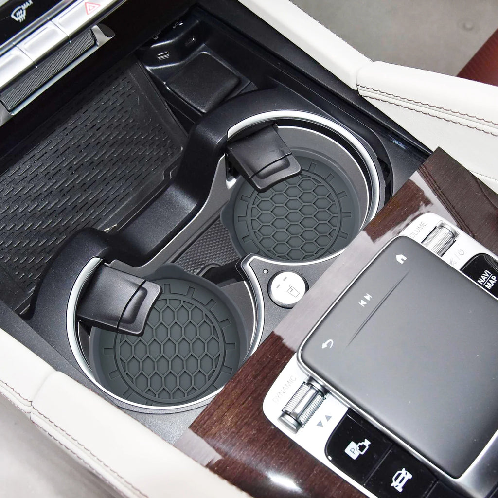 O porta-copos para carro é fácil de manter seus porta-copos limpos e antiaderentes, pode proteger os compartimentos originais do porta-copos do seu carro contra poeira, bebidas ou danos causados pela água, projetado para ser à prova de poeira.